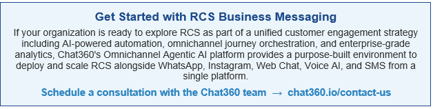 Platforms like Chat360 enable businesses to deploy AI-powered RCS messaging at scale, integrating automation, customer journeys, and analytics into a single omnichannel platform, so RCS functions as a connected layer within a broader CX architecture rather than a siloed channel.