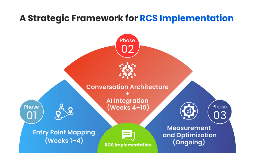 Successful RCS rollouts share a common architecture. Here's a phased approach that enterprise CX and marketing leaders can use as a baseline: